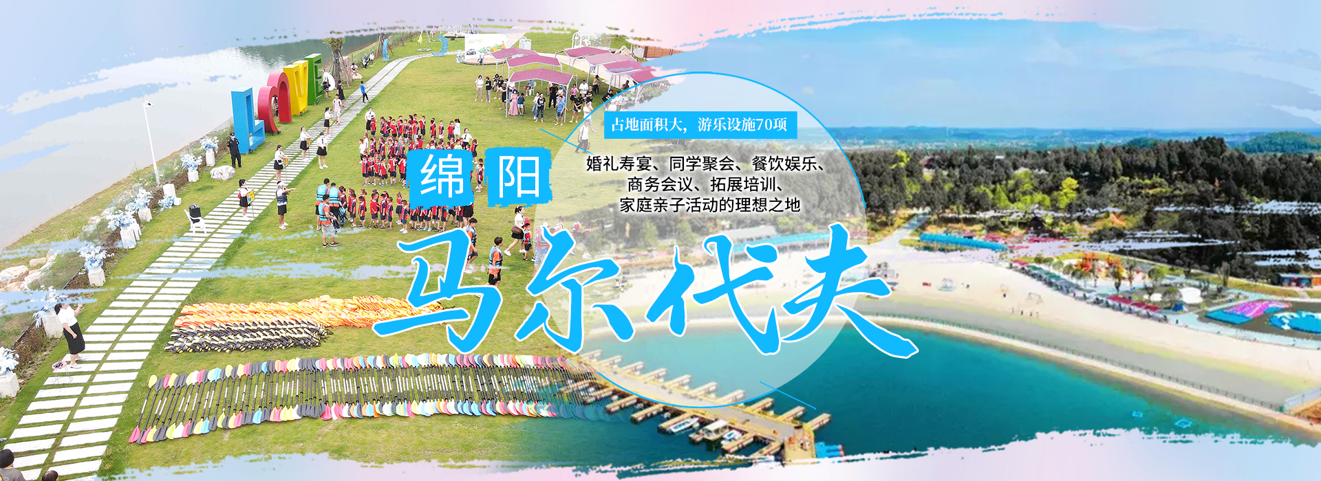 綿陽嘉成文化旅游有限公司是一家旅游開發(fā)公司,成立于2019年。 親水灣沙灘樂園項目由綿陽嘉成文化旅游有限公司開發(fā)運營,位于國家級水利風景區(qū)——綿陽市仙海水利風景區(qū),距綿陽市區(qū)15公里,車程約半個小時,是依托沉抗水庫建設(shè)的仙海風景區(qū)重點旅游項目。進入仙海風景區(qū)上坡向左進入環(huán)湖路前行1000米。項目總占地220畝,其中核心沙灘樂園占地100畝,現(xiàn)建成沙灘休閑、淺灘嬉水、水上運動,親子蹦蹦云、網(wǎng)紅多人秋千、人力過山車、水幕秋千、團隊拓展等項目十余個,還開設(shè)有特色中餐、仙海火鍋魚,自助燒烤等飲食項目。 近觀青山綠水,遠眺碧波蕩漾,清晨朝霞映翠、傍晚水天一色。親水灣沙灘主題樂園有可容納200人的沙灘會議室和30人的小型會議室;棋牌室16間; 商務(wù)KTV;餐飲中心可同時容納300人用餐;篝火晚會場地等,是婚禮壽宴、同學(xué)聚會、餐飲娛樂、商務(wù)會議、拓展培訓(xùn)、家庭親子活動的首選之地。